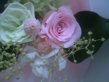 花の首の辺りに針金を通して、緑色のテープで針金を隠します。