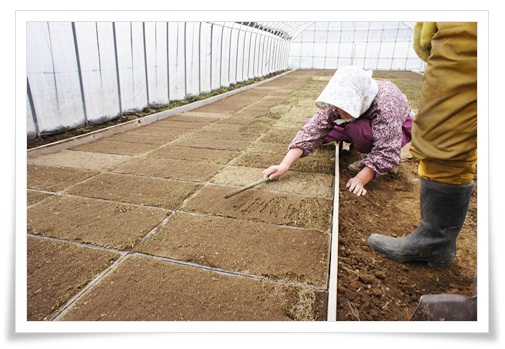 これは田んぼに植える苗をかぶっている土から顔を出してあげているところです。