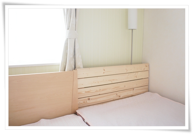 そこで、以前まではベビーベッドの敷板をヘッドボード代わりに立てていたのですが、