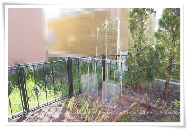 この畑替え作業も苗植えも緑のカーテン用の網も、