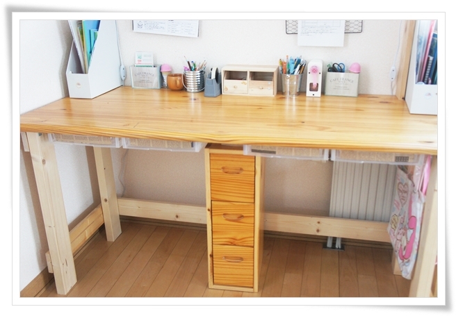 当然引出しなどなく、子供たちのこまごましたものは、机の上にジャラジャラと置かれることになるのでした(汗)