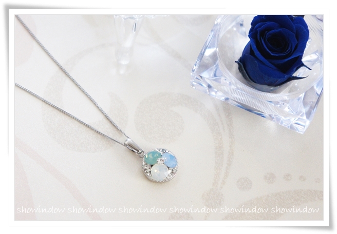 先生のご提案により、ティファニーブルーっぽい色のスワロフスキーを使って