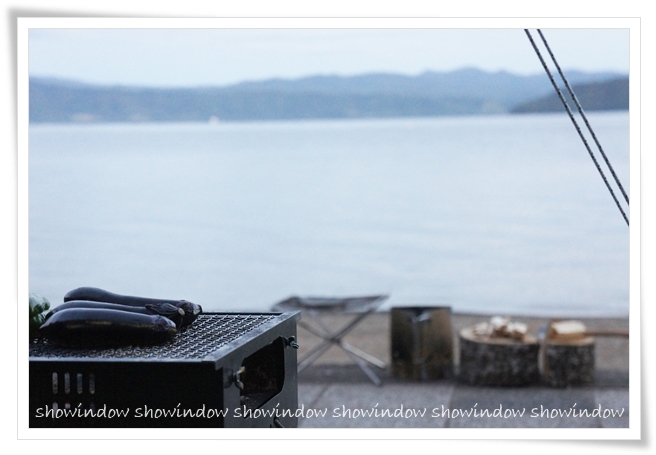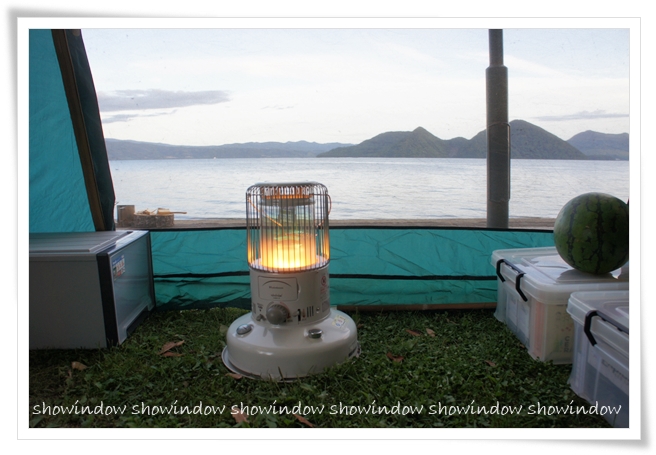 ストーブの向こうには、、、綺麗な綺麗な湖が!