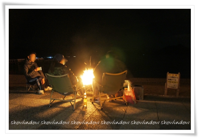 子どもたちがテントの中で遊んでる間に、大人たちは焚火を囲んで静かに会話(笑)