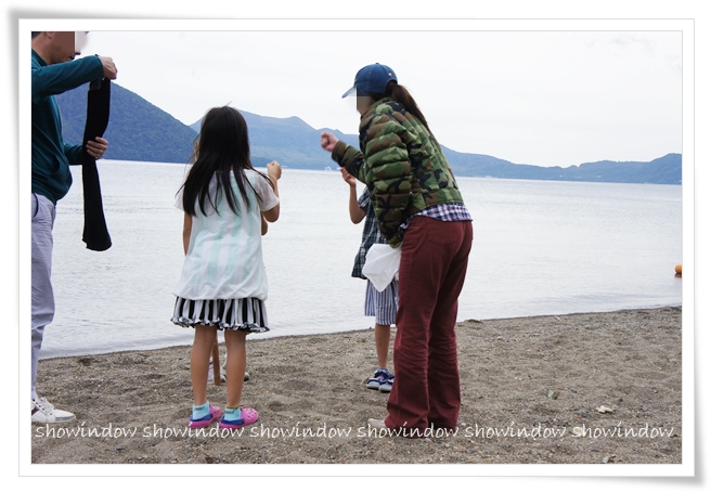 途中、洞爺湖温泉街の花火も遠くで見えて、子供たちも大はしゃぎ。