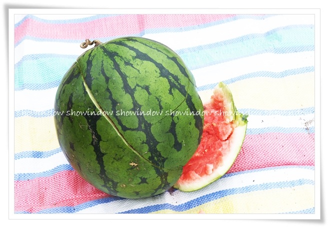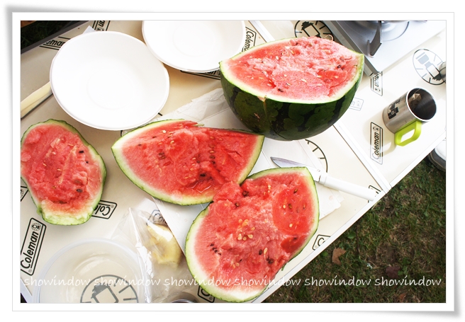 実家からもらったスイカを持参して、