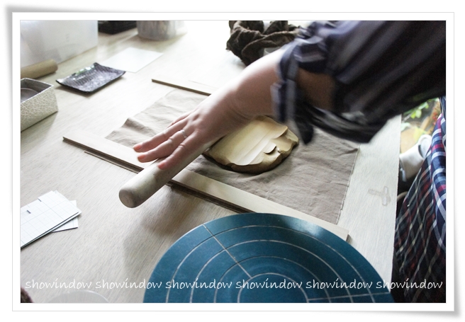 こちらは一緒に行ったママ友beeさん♪まずはこんな感じでタタラ板を作ります。