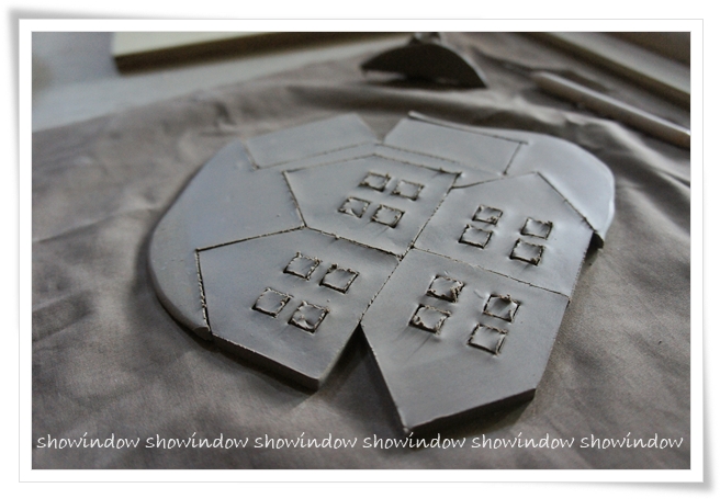 今度は白土で家の部分を切っていきます。作業が細かい~~💦